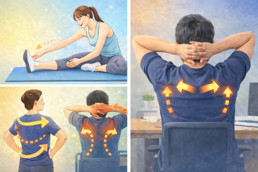 肩や腰まわりは、座る時間が長い人ほどこわばりを感じやすい部分です。ストレッチでその周辺をゆっくり動かすと、筋肉や関節を意識しやすくなり、動き出しの窮屈さがやわらぐことがあると言われています。いきなり大きく変えるというより、「前より少し動かしやすい」と感じる積み重ねが大切なのかもしれません。