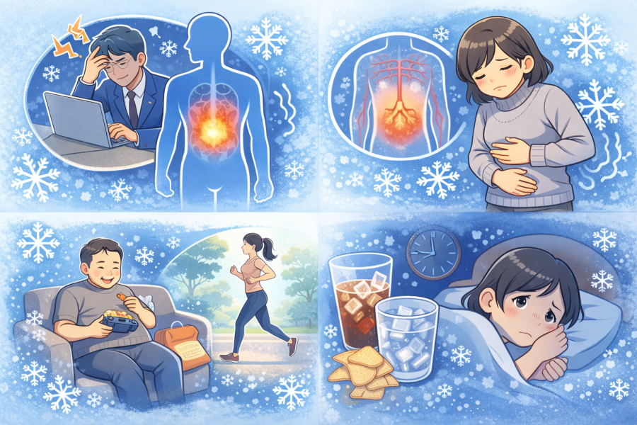 冷たい飲食物・睡眠不足・ストレスなど生活習慣の影響