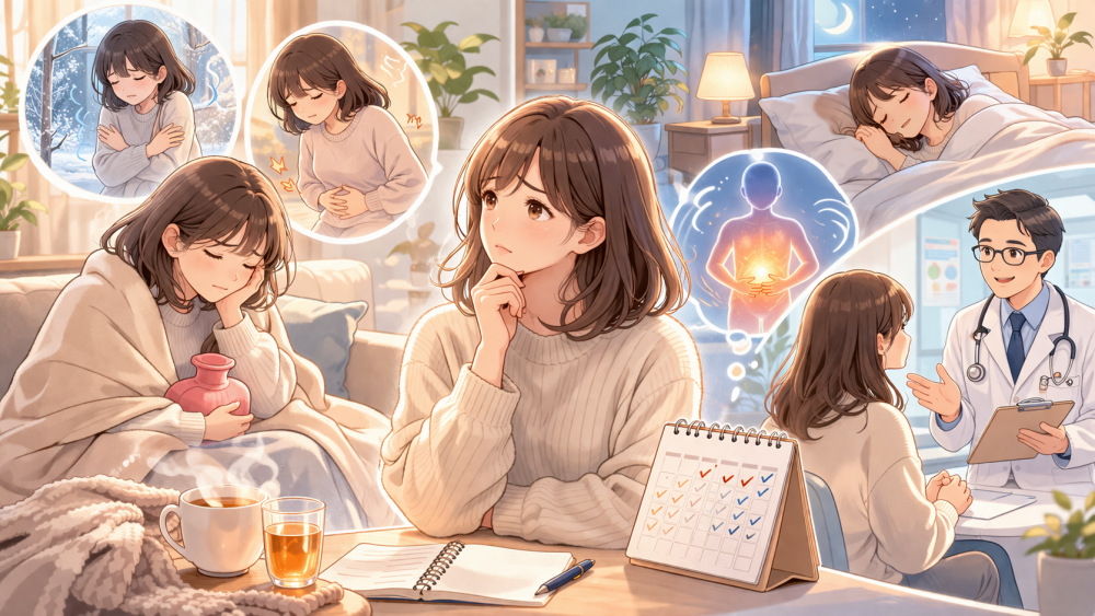 冷えは一般的によく使われる言葉ですが、医学的にひとつの病名として扱われるものではないと言われています。ただ、病名ではないから気にしなくていい、という話でもありません。冷えが続くことで、毎日のだるさや集中しづらさ、気分の落ち込み、睡眠の質の低下などにつながることもあるようです。とくに、季節に関係なく冷えを感じる、長く続いている、ほかの不調も重なっている、という場合は、体からのサインとして受け止める視点も大切だと考えられます。