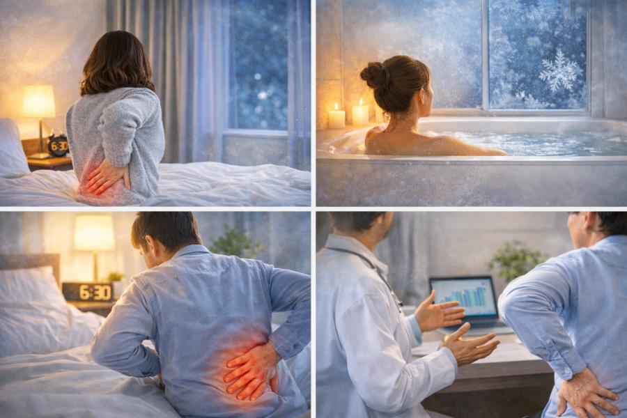 そう感じたときは、痛みの出やすい時間帯や、温まったあとの変化を見てみるとヒントになるようです。参考記事では、体が冷えると血液のめぐりが落ちやすくなり、筋肉がこわばって腰痛につながると言われています。とくに朝方や夜、寒さを感じやすい時間に腰がつらくなるなら、冷えからくる腰痛の可能性も考えられるようです。逆に、湯船につかったあとや体が温まったあとに少し楽になるなら、冷えの影響を受けている場合もあると言われています。