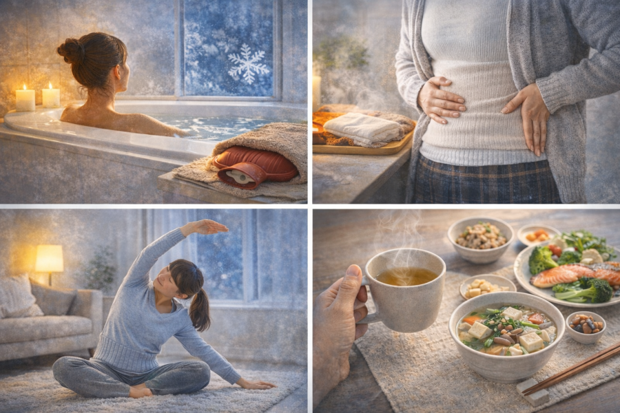 そんなときは、いきなり特別なことを増やすより、毎日の中で体を無理なく温める工夫から始めるのが取り入れやすいようです。参考記事でも、冷えからくる腰痛は血行不良と関係しやすく、日常生活の見直しが対処の基本になると言われています。たとえば、湯船につかる、服装を工夫する、軽く動く、食事で冷やしすぎないようにする、といった積み重ねが大切だと紹介されています。特に、腰だけを温めればよいと考えるのではなく、お腹や足も含めて体全体を冷やさない意識がポイントになるようです。