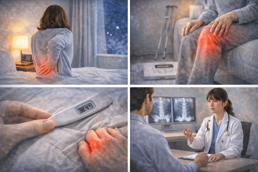 そんなときも慎重に考えたいところです。発熱や原因のはっきりしない体重減少、横になっていても続く痛みは、一般的な筋肉のこわばりだけでは説明しづらい場合があると言われています。済生会でも、発熱や体重減少、活動に関係なく続く腰痛は要注意の項目として示されています。冷えからくる腰痛だと思い込まず、全身のサインも一緒に確認することが大切です。