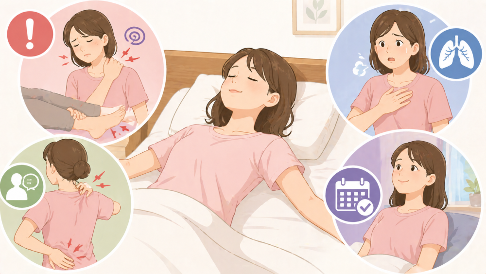 最後に、「やった後どう感じるか」を確認してみましょう。胸が少し広がった感じ、息を吐きやすい感覚、肩の力が抜けた感じなど、小さな変化に気づくことが大切だと言われています。反対に、痛みや息苦しさが強くなる場合は、やり方が合っていない可能性もあります。呼吸筋ストレッチを寝ながら行うときは、回数よりも体の反応を見ながら調整することを意識しましょう。