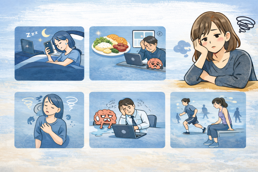 体だけでなく、心の状態も疲労に影響すると言われています。強いストレスや気分の落ち込みが続くと、十分に休んでも回復しづらいと感じることがあるとされています。やる気が出ない、気分が晴れないといった変化が続く場合は、心の疲れも関係している可能性があると考えられています。