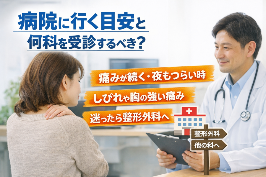 「結局、何科に行けばいいの?」と悩む方は少なくないようです。肩甲骨の痛みで迷ったときは、まず整形外科で相談する流れが考えやすいと言われています。骨や関節、筋肉、首からの影響などを含めて見てもらいやすく、必要に応じてほかの科につないでもらう形も取りやすいようです。もちろん、胸の症状や息苦しさが前に出ている場合は、その症状に応じた相談先を考えることも大切とされています。まずは「どこが痛いか」だけでなく、「いつから」「どんな動きで」「ほかに何があるか」を整理しておくと、相談もしやすくなると言われています。