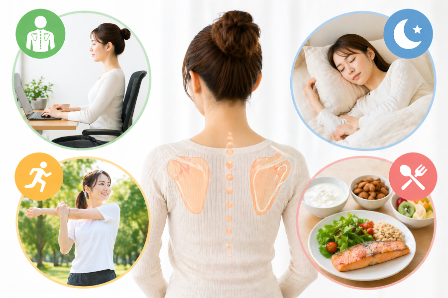 そう思いますよね。肩のピクピクは、その場の対処だけでなく“日常のクセ”を見直すことで予防しやすくなると言われています。ポイントは、負担をためない体づくり。難しいことをやる必要はなくて、ちょっとした習慣の積み重ねがカギになります。