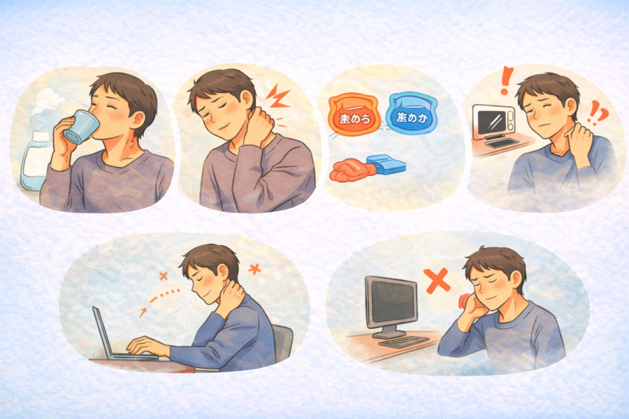 「動かすと痛いならどうしたらいいですか?」という場合は、首や筋肉の負担を減らすことがポイントです。